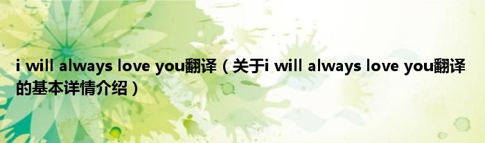 i will always love you翻译(关于i will always love you翻译的基本详情介绍)