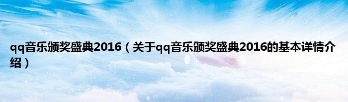 本文关于qq音乐颁奖盛典2016的基本详情介绍就讲解完毕,希望对大家有所帮助。