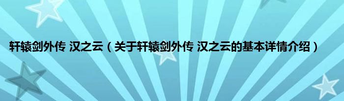 本文关于轩辕剑外传 汉之云的基本详情介绍就讲解完毕,希望对大家有所帮助。