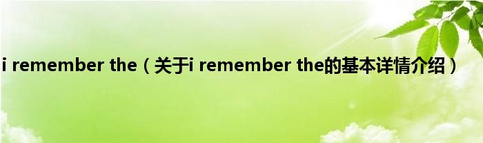 本文关于i remember the的基本详情介绍就讲解完毕,希望对大家有所帮助。