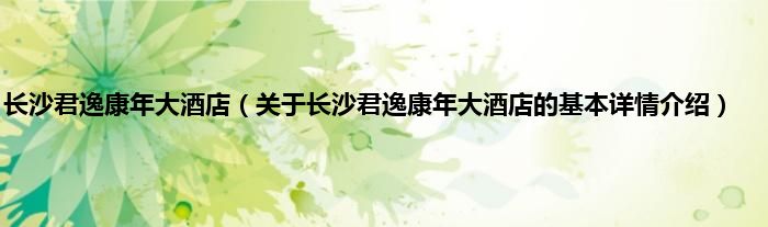 本文关于长沙君逸康年大酒店的基本详情介绍就讲解完毕,希望对大家有所帮助。