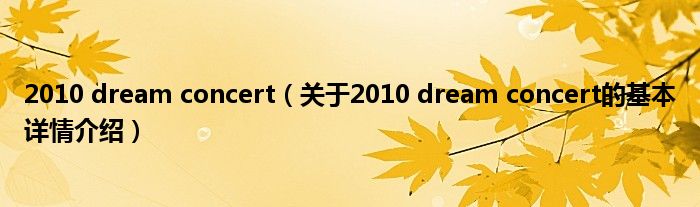 本文关于2010 dream concert的基本详情介绍就讲解完毕,希望对大家有所帮助。