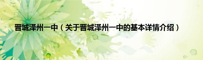 本文关于晋城泽州一中的基本详情介绍就讲解完毕,希望对大家有所帮助。