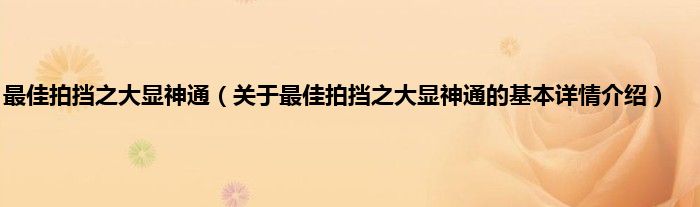 本文关于最佳拍挡之大显神通的基本详情介绍就讲解完毕,希望对大家有所帮助。