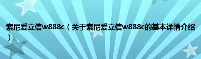 本文关于索尼爱立信w888c的基本详情介绍就讲解完毕,希望对大家有所帮助。