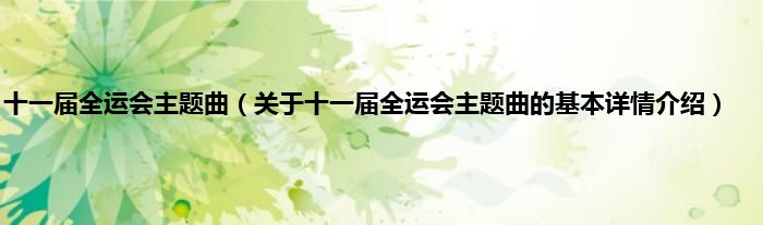 本文关于十一届全运会主题曲的基本详情介绍就讲解完毕,希望对大家有所帮助。