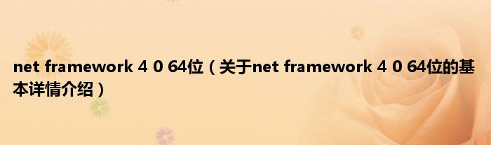 本文关于net framework 4 0 64位的基本详情介绍就讲解完毕,希望对大家有所帮助。