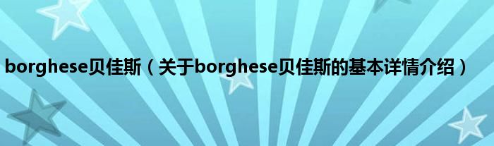 大家好我是小蝌蚪,borghese贝佳斯,关于borghese贝佳斯的基本详情介绍很多人还不知道,那么现在让我们一起来看看吧!