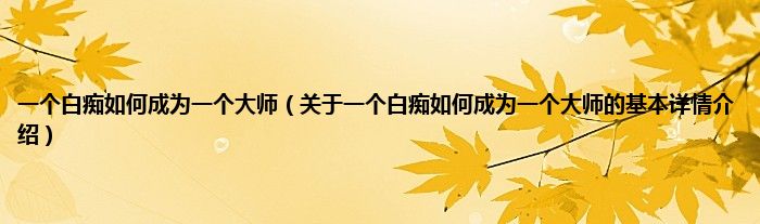 本文关于一个白痴如何成为一个大师的基本详情介绍就讲解完毕,希望对大家有所帮助。