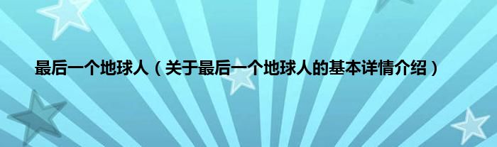 本文关于最后一个地球人的基本详情介绍就讲解完毕,希望对大家有所帮助。