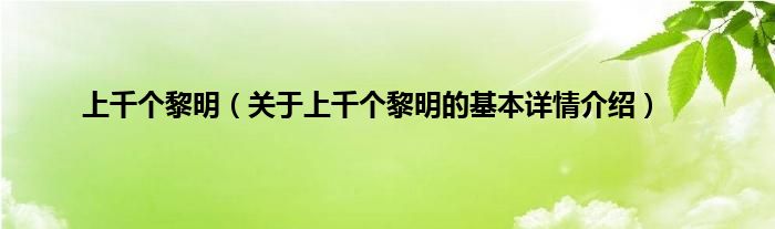 本文关于上千个黎明的基本详情介绍就讲解完毕,希望对大家有所帮助。