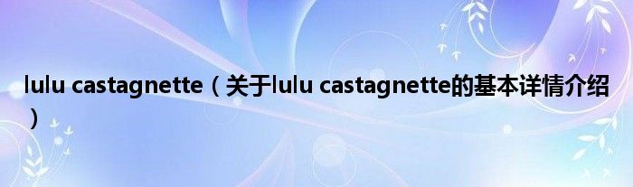 大家好我是小蝌蚪,lulu castagnette,关于lulu castagnette的基本详情介绍很多人还不知道,那么现在让我们一起来看看吧!