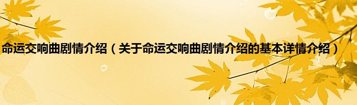 本文关于命运交响曲剧情介绍的基本详情介绍就讲解完毕,希望对大家有所帮助。