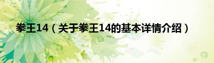 本文关于拳王14的基本详情介绍就讲解完毕,希望对大家有所帮助。