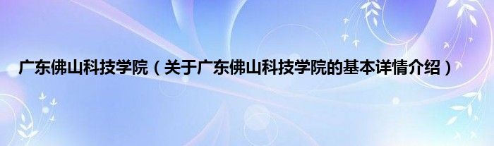 本文关于广东佛山科技学院的基本详情介绍就讲解完毕,希望对大家有所帮助。