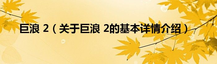 本文关于巨浪 2的基本详情介绍就讲解完毕,希望对大家有所帮助。