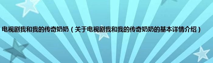电视剧我和我的传奇奶奶(关于电视剧我和我的传奇奶奶的基本详情介绍)