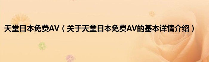 本文关于天堂日本免费AV的基本详情介绍就讲解完毕,希望对大家有所帮助。