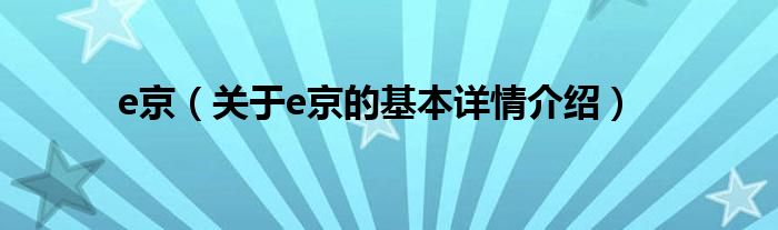 本文关于e京的基本详情介绍就讲解完毕,希望对大家有所帮助。