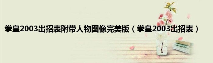 大家好,小问来为大家解答以上问题。拳皇2003出招表附带人物图像完美版,拳皇2003出招表这个很多人还不知道,现在让我们一起来看看吧!