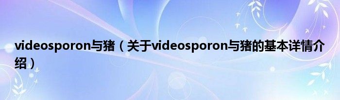 大家好我是小蝌蚪,videosporon与猪,关于videosporon与猪的基本详情介绍很多人还不知道,那么现在让我们一起来看看吧!