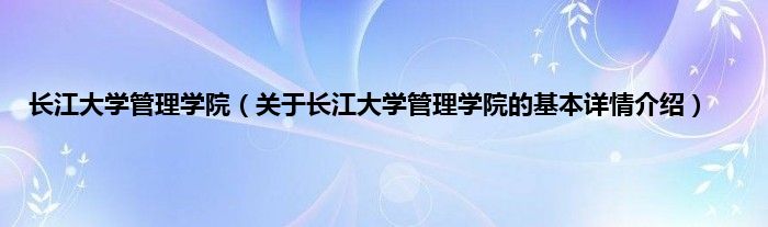 本文关于长江大学管理学院的基本详情介绍就讲解完毕,希望对大家有所帮助。