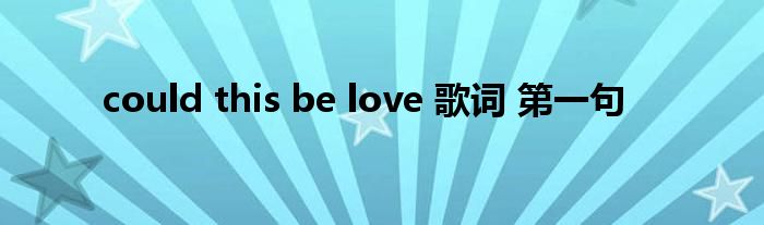 大家好,小问来为大家解答以上问题。could this be love 歌词 第一句这个很多人还不知道,现在让我们一起来看看吧!