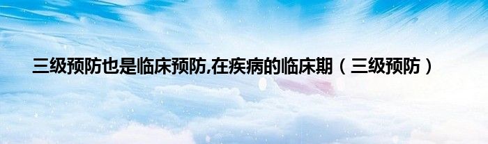 大家好,小问来为大家解答以上问题。三级预防也是临床预防,在疾病的临床期,三级预防这个很多人还不知道,现在让我们一起来看看吧!