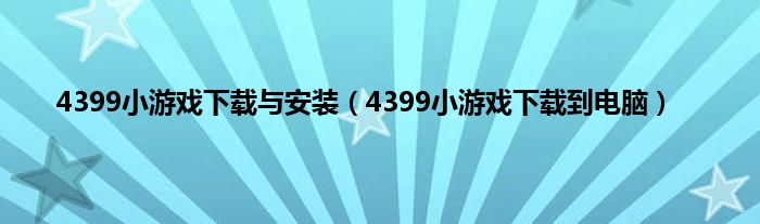 以上就是【4399小游戏下载与安装,4399小游戏下载到电脑】相关内容。