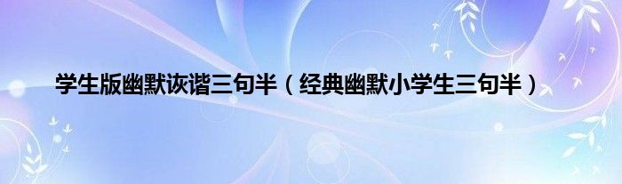 以上就是【学生版幽默诙谐三句半,经典幽默小学生三句半】相关内容。