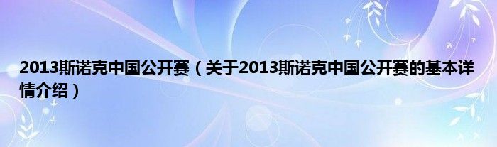 本文关于2013斯诺克中国公开赛的基本详情介绍就讲解完毕,希望对大家有所帮助。