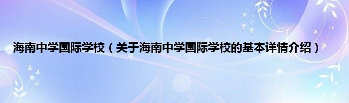 本文关于海南中学国际学校的基本详情介绍就讲解完毕,希望对大家有所帮助。