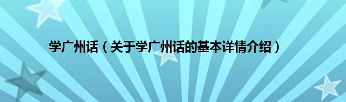 本文关于学广州话的基本详情介绍就讲解完毕,希望对大家有所帮助。