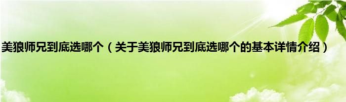 本文关于美狼师兄到底选哪个的基本详情介绍就讲解完毕,希望对大家有所帮助。
