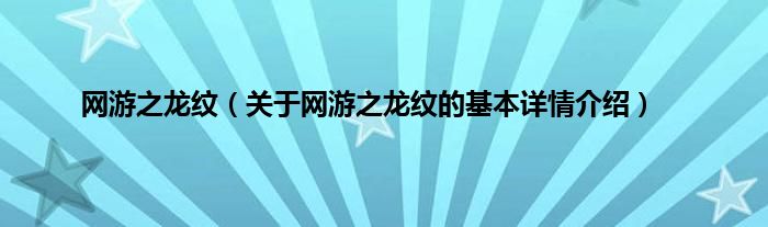 本文关于网游之龙纹的基本详情介绍就讲解完毕,希望对大家有所帮助。