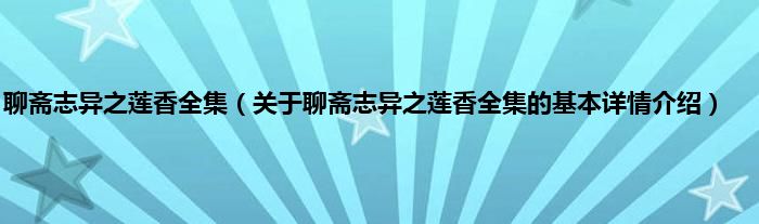 本文关于聊斋志异之莲香全集的基本详情介绍就讲解完毕,希望对大家有所帮助。