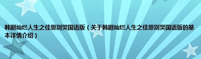韩剧灿烂人生之佳恩别哭国语版(关于韩剧灿烂人生之佳恩别哭国语版的基本详情介绍)