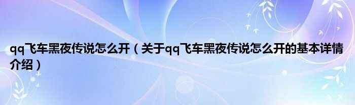 qq飞车黑夜传说怎么开(关于qq飞车黑夜传说怎么开的基本详情介绍)