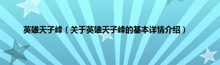 本文关于英雄天子峰的基本详情介绍就讲解完毕,希望对大家有所帮助。