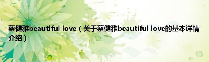 本文关于蔡健雅beautiful love的基本详情介绍就讲解完毕,希望对大家有所帮助。