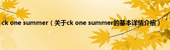 本文关于ck one summer的基本详情介绍就讲解完毕,希望对大家有所帮助。