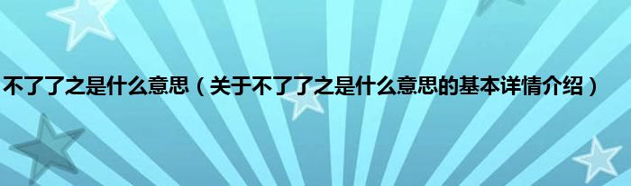 本文关于不了了之是什么意思的基本详情介绍就讲解完毕,希望对大家有所帮助。