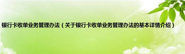 本文关于银行卡收单业务管理办法的基本详情介绍就讲解完毕,希望对大家有所帮助。