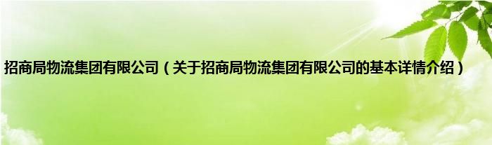 本文关于招商局物流集团有限公司的基本详情介绍就讲解完毕,希望对大家有所帮助。
