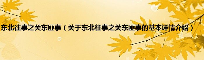 本文关于东北往事之关东匪事的基本详情介绍就讲解完毕,希望对大家有所帮助。