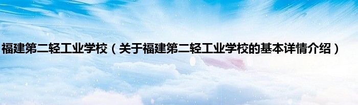 福建第二轻工业学校(关于福建第二轻工业学校的基本详情介绍)