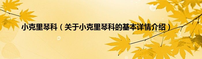 本文关于小克里琴科的基本详情介绍就讲解完毕,希望对大家有所帮助。