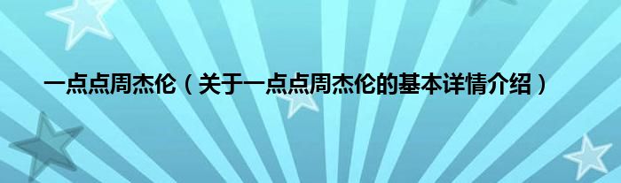本文关于一点点周杰伦的基本详情介绍就讲解完毕,希望对大家有所帮助。