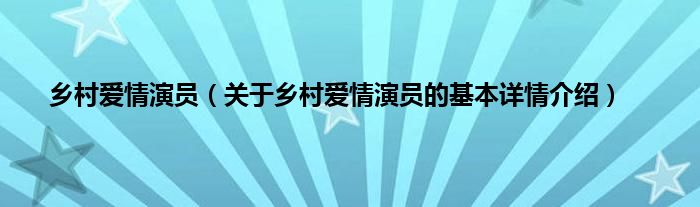 本文关于乡村爱情演员的基本详情介绍就讲解完毕,希望对大家有所帮助。