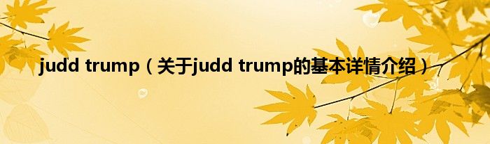 本文关于judd trump的基本详情介绍就讲解完毕,希望对大家有所帮助。